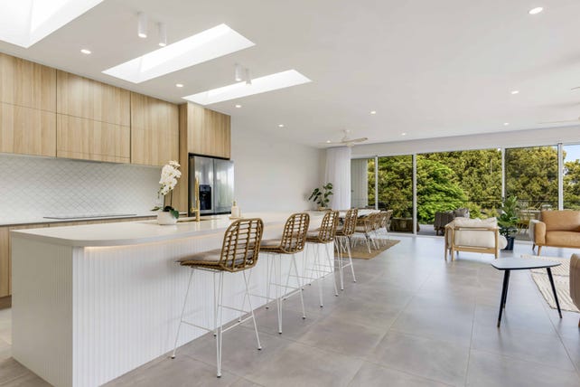 Set against a stunning hinterland backdrop, the property enjoys a peaceful and private position, with elevated vistas that stretch across the treetops-an idyllic setting for relaxed afternoons or entertaining as the sun sets.