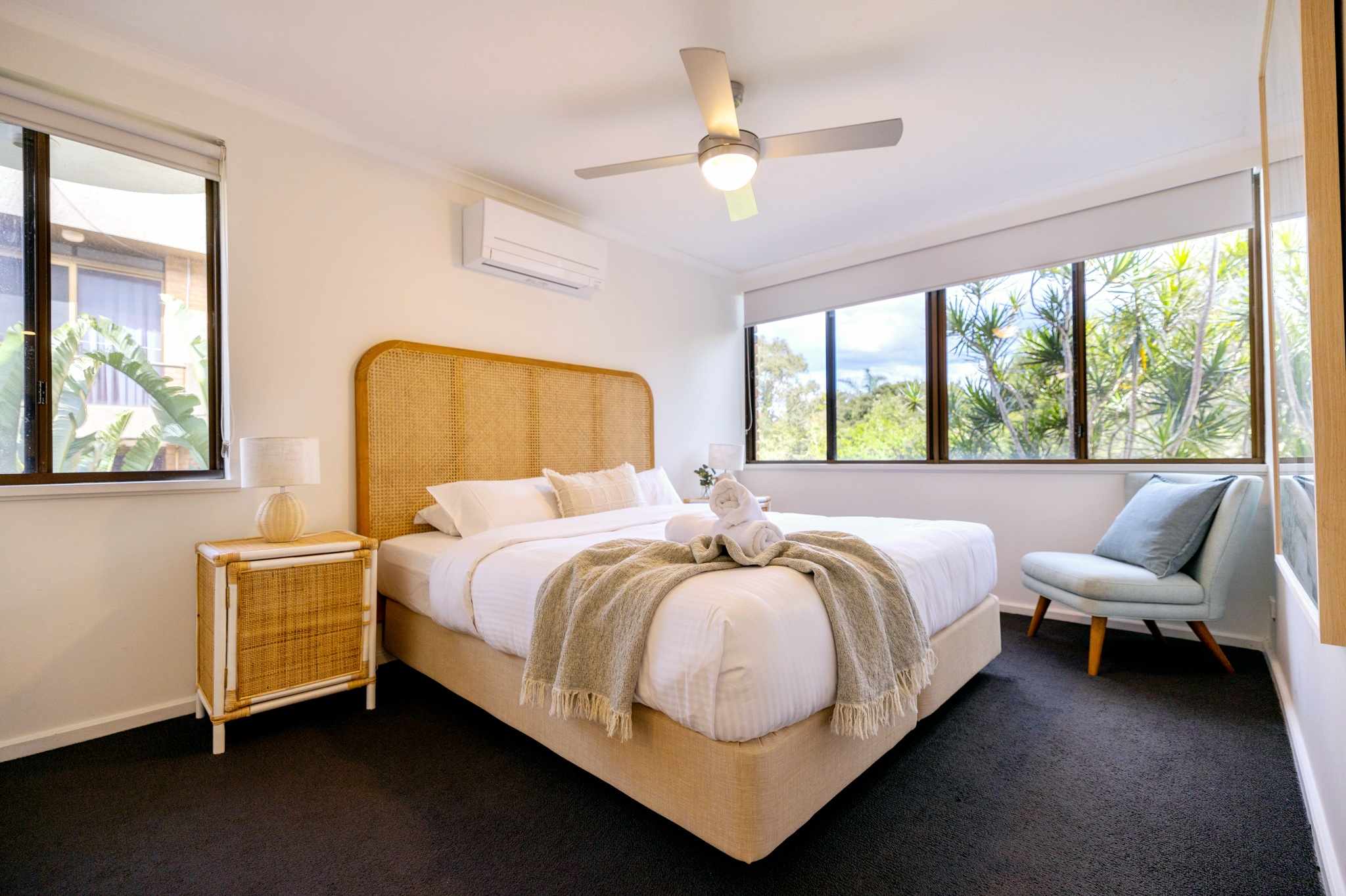 It can also be owner occupied year round or long term leased. - Two Bedrooms, Two Bathrooms (main plus ensuite) - Fully furnished and stylish lounge/dining room - Spacious entertainers balcony with fantastic views - Air-conditioning Split System in Master Bedroom - Fully equipped original timber kitchen - Laundry with washing machine and dryer