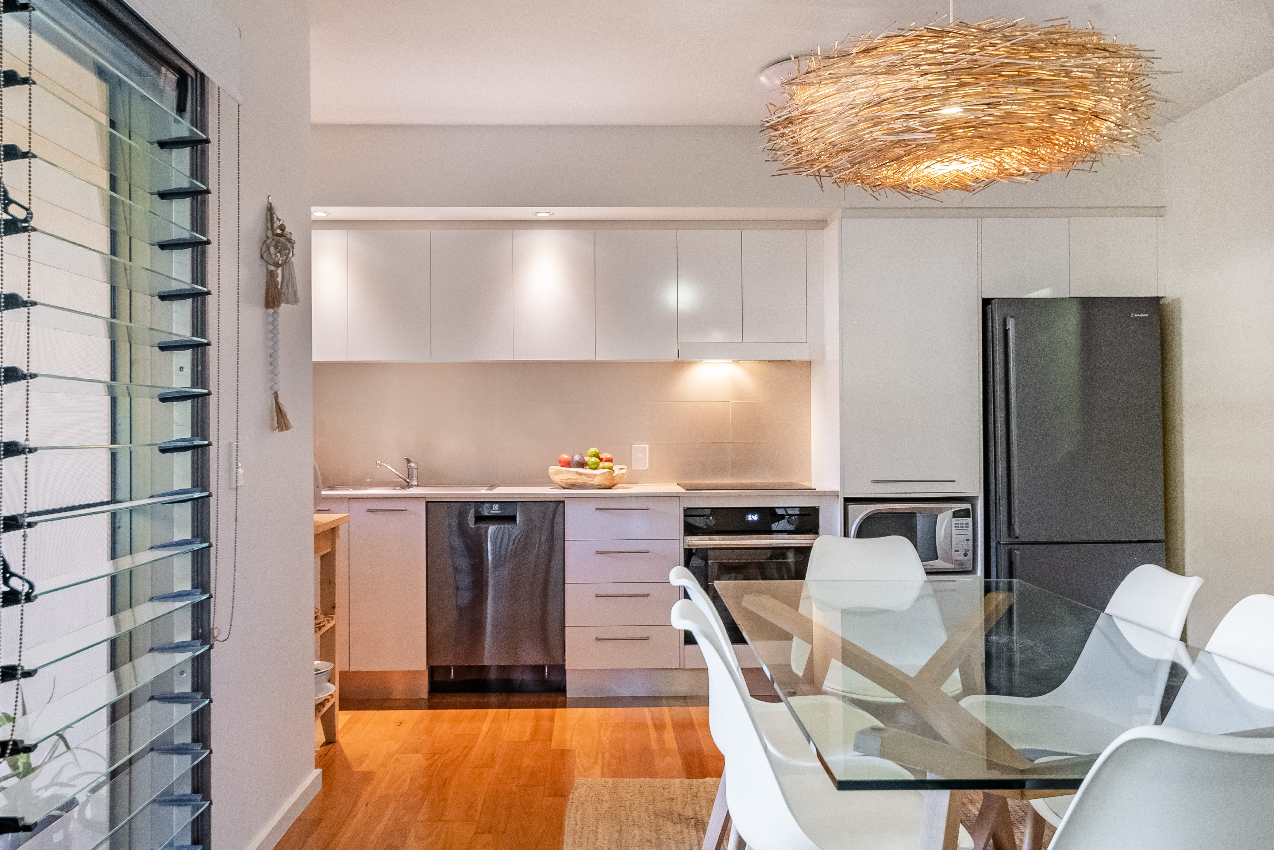 Modern polished timber floors feature throughout and brand new wool carpets are in the 2 built in bedrooms & gorgeous pendant light fittings and all new whitegoods and appliances complete the update to the living and kitchen areas.