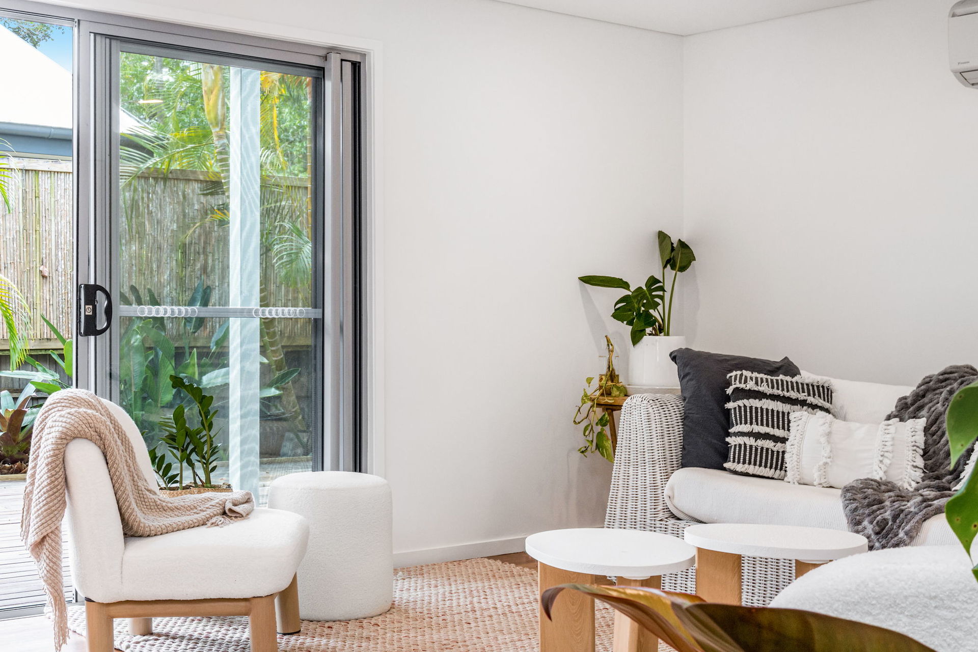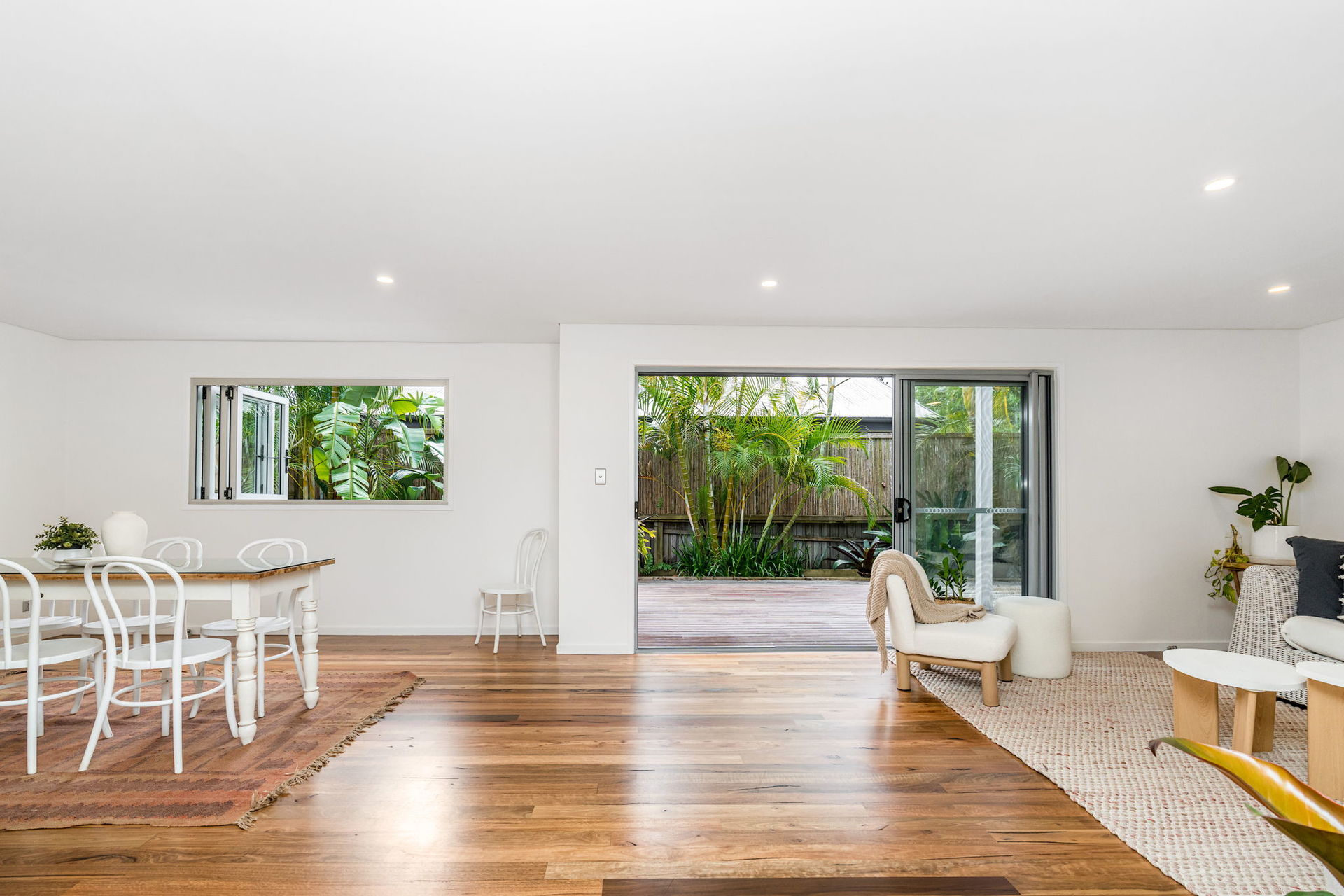 OPEN - Thursday 17th and Saturday 19th at 11am - Idyllic Peaceful Retreat Close to Beach and Town Discover this bright and airy, north-facing modern townhouse designed with comfort and convenience in mind. This two-level home sits on a generous 455 square meters and features three bedrooms and two bathrooms. Offering flexible living arrangements, the separate upstairs accommodation is ideal for guests or a spacious parents' retreat. Enjoy views of treetops from the balcony and the serenity of being close to nature.