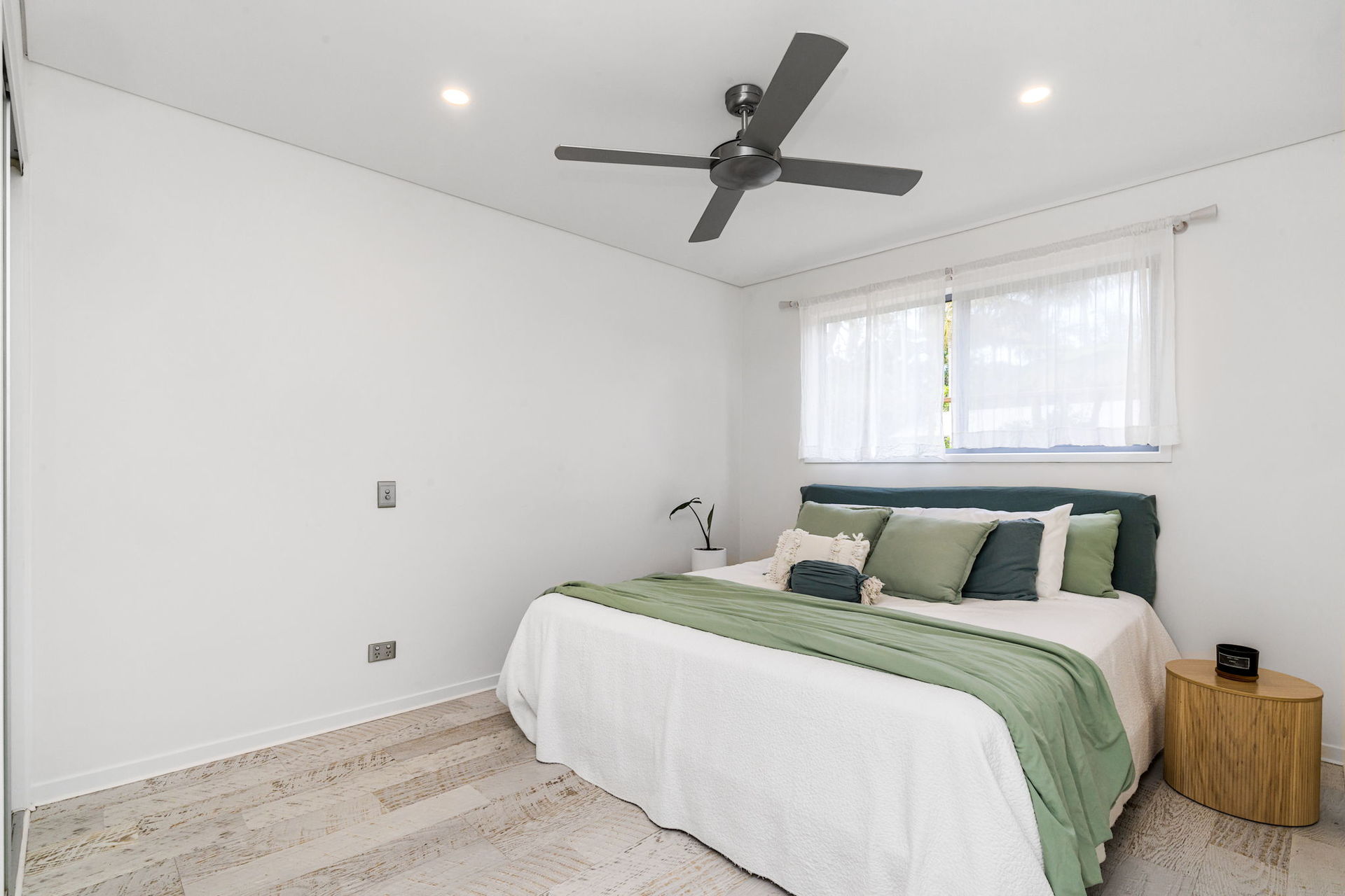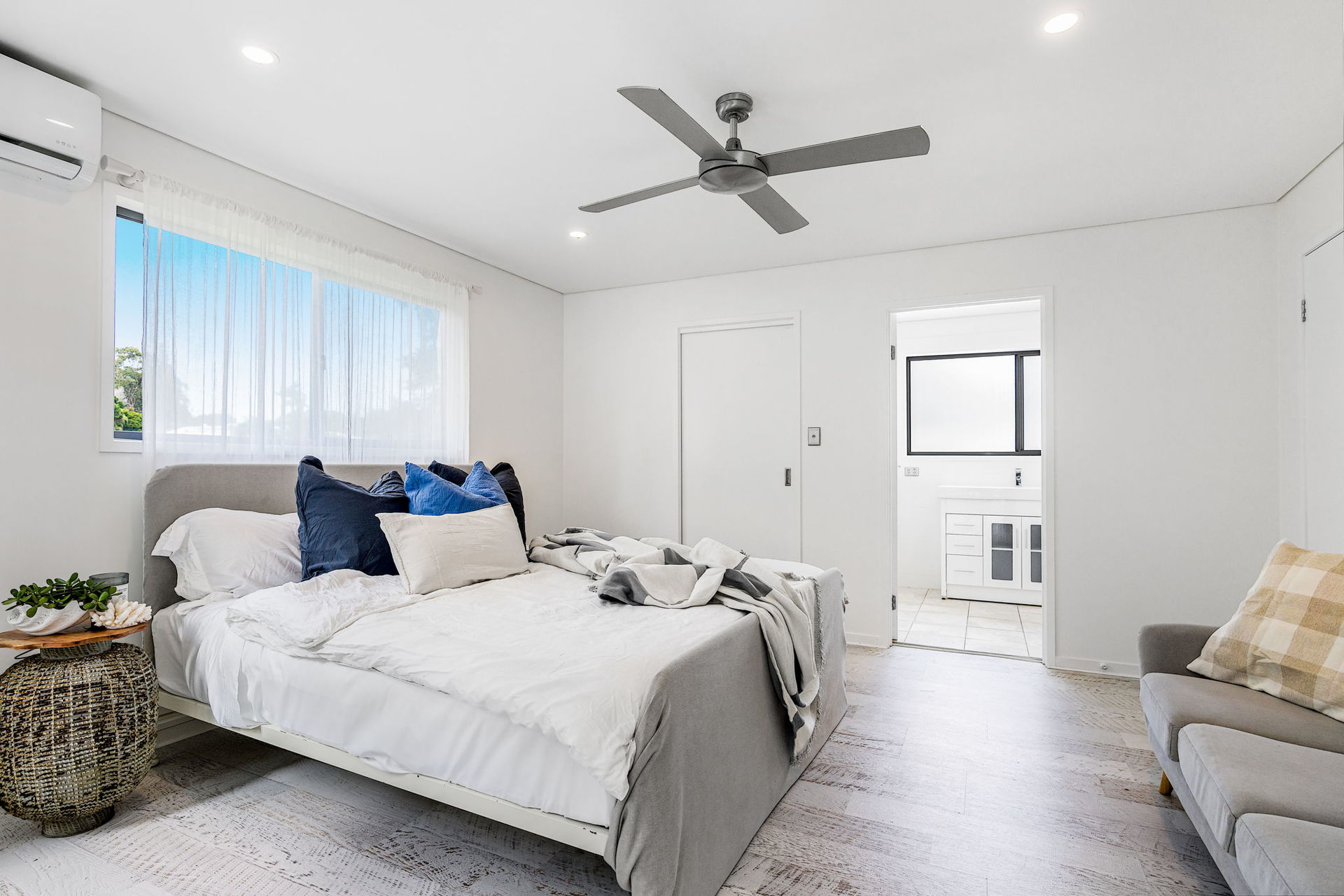 This home features three light-filled bedrooms, including a master with an ensuite and walk-in robe. Modern amenities such as solar hot water, air conditioning in the living room, and ceiling fans in every bedroom create a cozy haven in any season. The entire house has been freshly painted inside and out. The open-plan living space flows seamlessly onto a sunny deck, perfect for outdoor entertaining. Low-maintenance tropical gardens create a relaxed, resort-like feel, while the kitchen boasts high-end appliances like a Bellini gas cooktop, SMEG oven, and Bosch dishwasher.