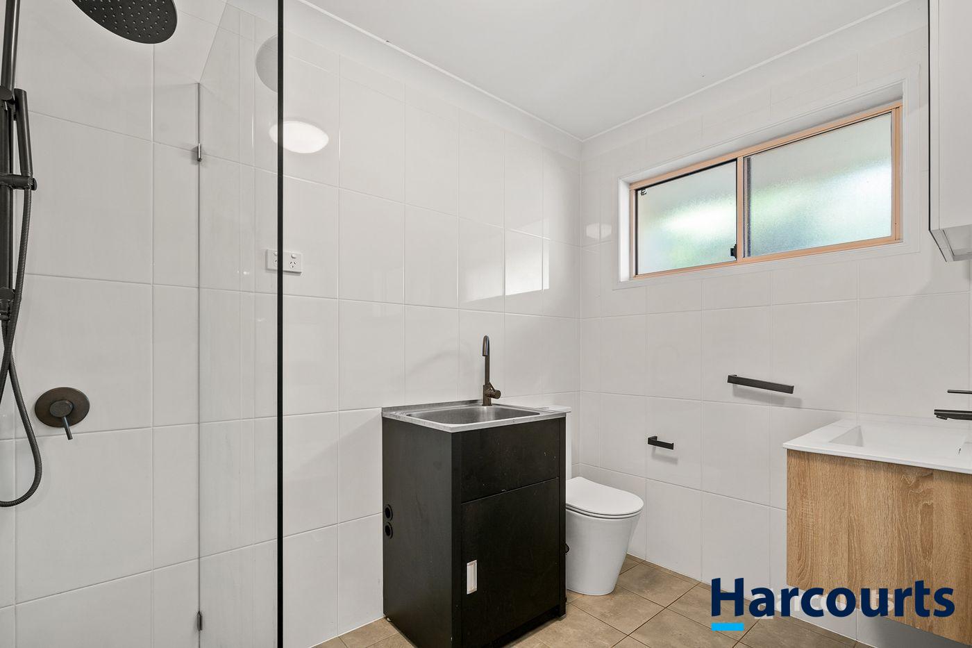 At the rear of the property, a newly renovated self-contained two-bedroom studio awaits. This versatile space is perfect for guests, extended family, or rental income. It includes a private garden and a partially covered patio for outdoor enjoyment, along with a modern kitchen with gas cooking, an updated bathroom, and internal laundry facilities.