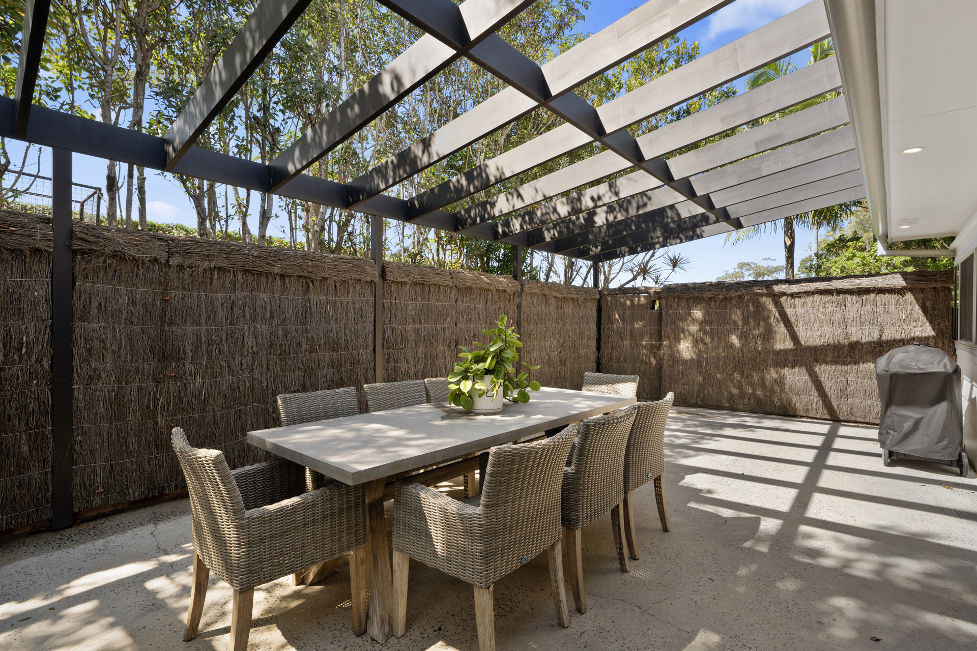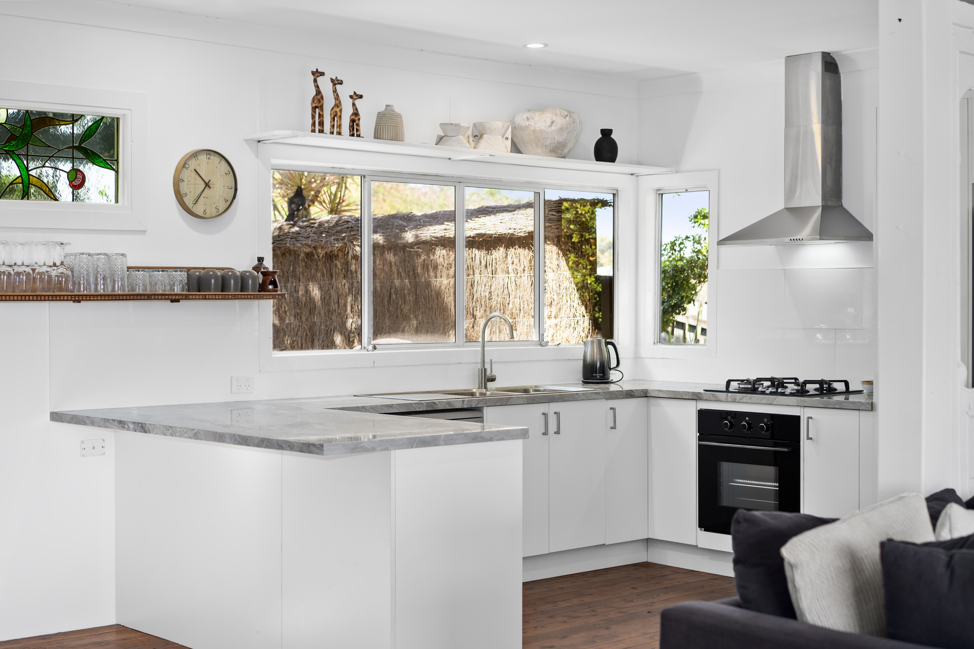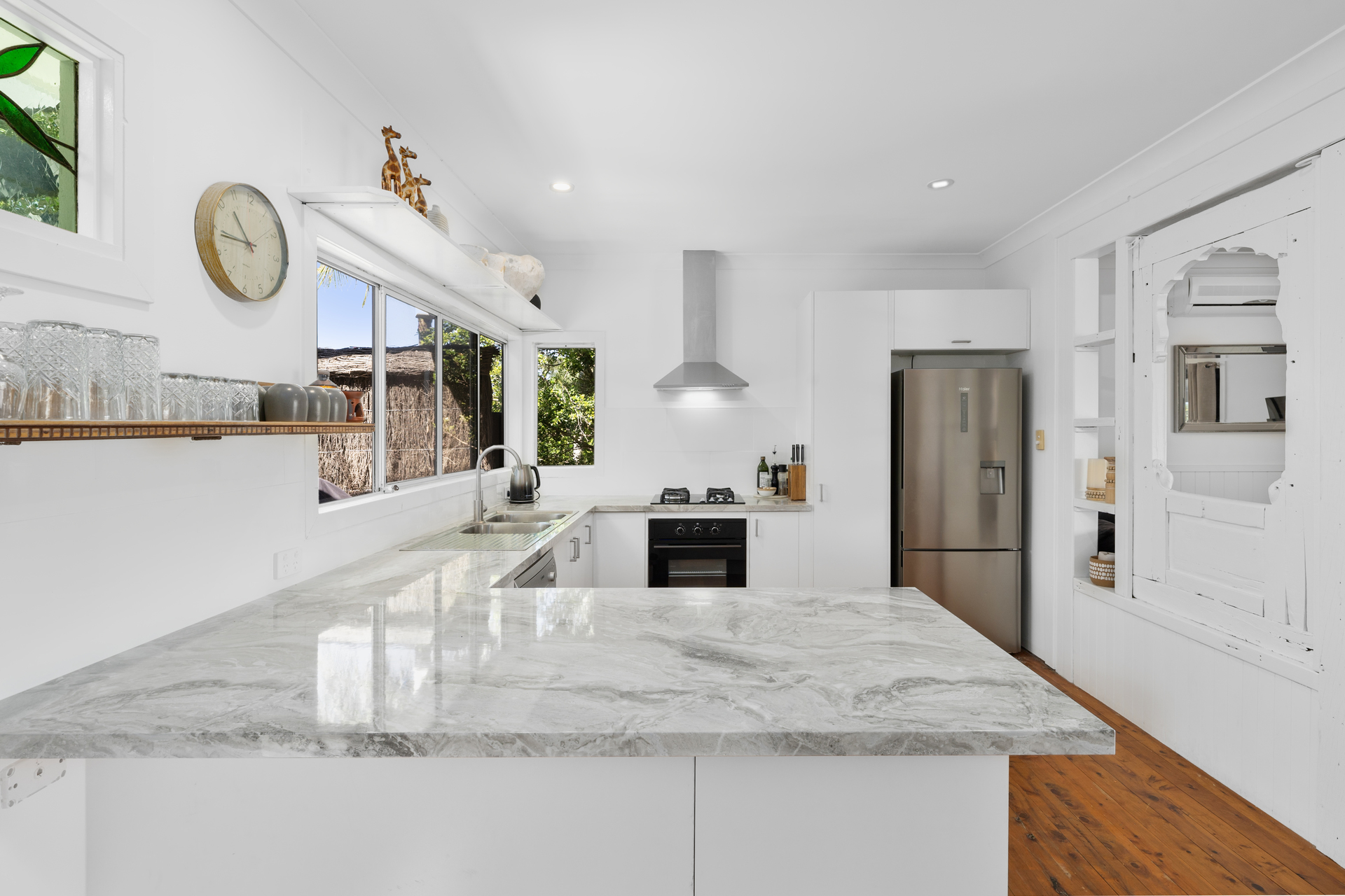 - Elevated three bedroom home in a coveted central Byron position - Enjoy the sweeping sunset views to the hinterland from the verandah - Light and airy open plan living area with classic timber floors and VJ panelling - Renovated kitchen features marble-look benchtops, gas cooking, Bosch dishwasher - Spacious dining room flows to the private entertainer's courtyard with leafy outlook - Three bedrooms with built-ins, fans and plantation shutters, bed 1 offers air con - Double lock-up garage, two storage areas offer versatility as a home gym or office space - Walk or cycle to Main or Clarkes Beach, 10 min stroll to the Jonson Lane complex - Moments to a network of bush tracks leading to beautiful Tallow Beach - Prime low-maintenance offering for investors, holiday makers or families