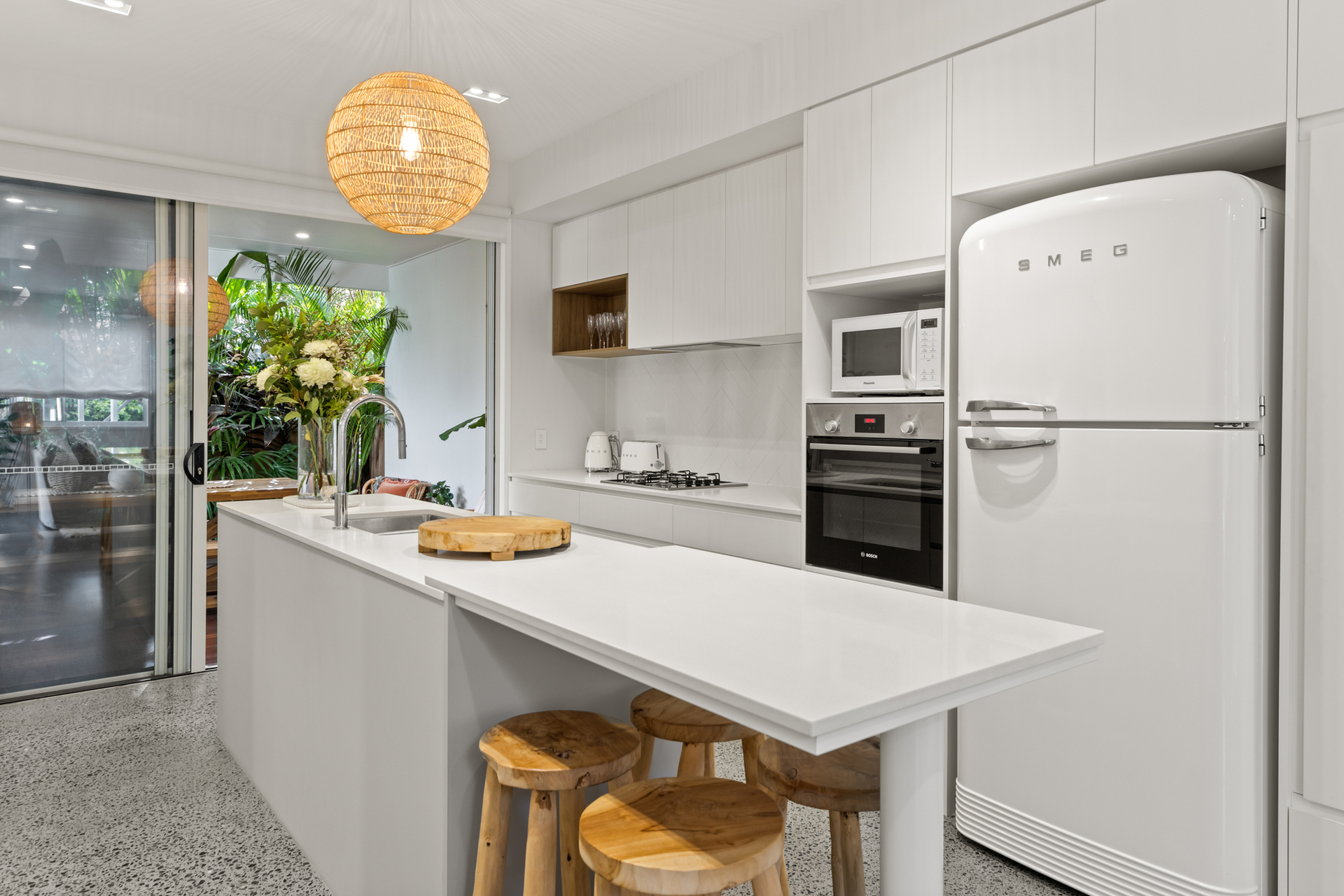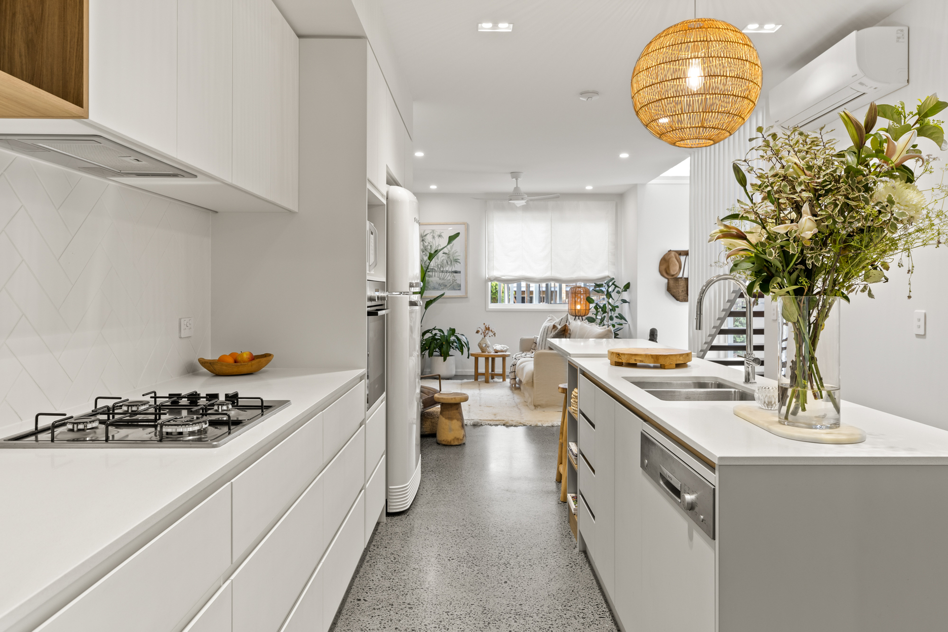 Constructed in 2020, this residence features a state-of-the-art kitchen with Bosch appliances and an architectural design that seamlessly blends indoor and outdoor living. The open-plan living area flows effortlessly into a covered north facing alfresco space and a charming yard and garden, making it perfect for both everyday living and entertaining.