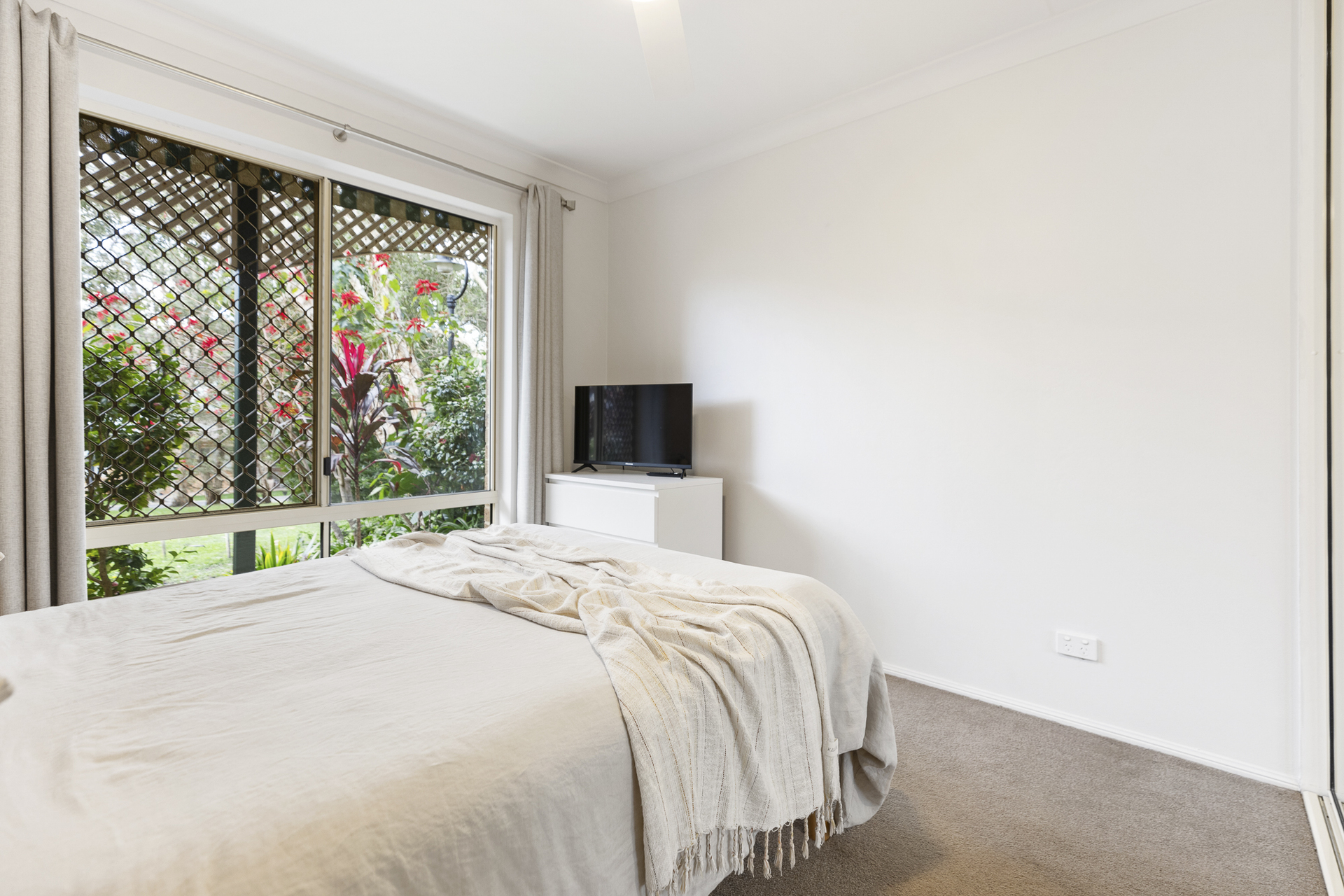 Renovated Ground-Floor Home with Pool and Beach Proximity in Cape Byron Estate Discover effortless living in this updated ground-floor gem, perfectly situated in a tranquil cul-de-sac within the Cape Byron over 55's estate. This inviting residence offers two generously sized bedrooms with built-in robes, a modern open-plan kitchen, and a serene leafy outlook. The home has been thoughtfully renovated in 2022, including a new kitchen, updated flooring, ceiling fans and air conditioning for your comfort.